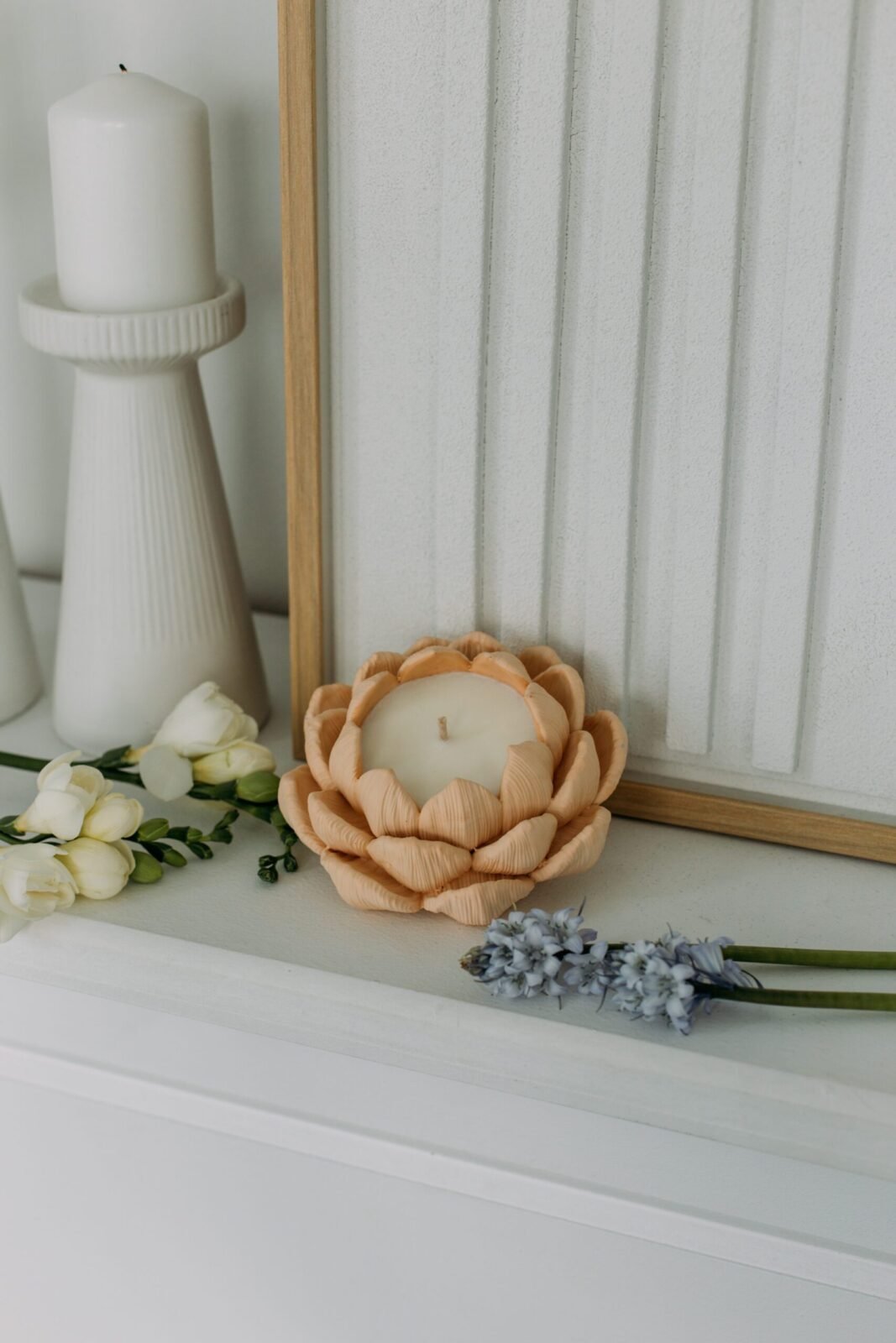 Свічка у формі розкритого лотоса — символ гармонії, чистоти та відродження. Виготовлена з натурального соєвого воску, вона рівно горить, не виділяє шкідливих речовин та створює атмосферу спокою. Ця декоративна соєва свічка ручної роботи стане стильним акцентом у вашому домі та чудовим подарунком. Об’єм дозволяє насолоджуватися тривалим горінням, роблячи її ідеальною для вечірніх ритуалів, медитацій чи романтичної атмосфери.
